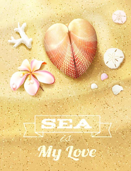 If you love going to the see, you will definitely enjoy this pack of marine vector graphics. Indeed, we have here the sea, the beach and various marine souvenirs: shells, corals, flowers and even one of those ocean stars, a beautiful and unique creation.