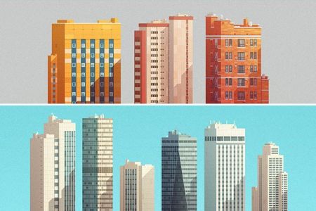 Grouped downtown buildings vector illustrations