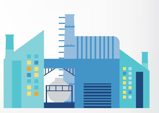 These industrial plants illustrations are related to industrial buildings and you can grab this factory building vector set. This building illustration is done in flat design style viewed from rear, so you can combine with other flat design style illustrations if you have any already.